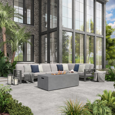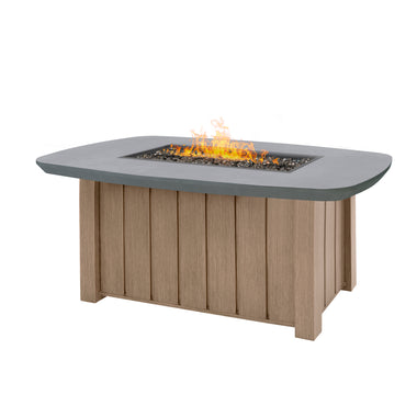 Gas Fire Tables are a great way to add design and warmth to your outdoor space. Unlike wood burning fire options, gas fire tables don't have the smell and smoke that comes with burning wood and it eliminates the chance of embers burning furniture and cushions. The ability turn them on and off with the push of a button also adds safety and convenience. Come see our collection of fire tables. We offer a variety of shapes, sizes and finishes